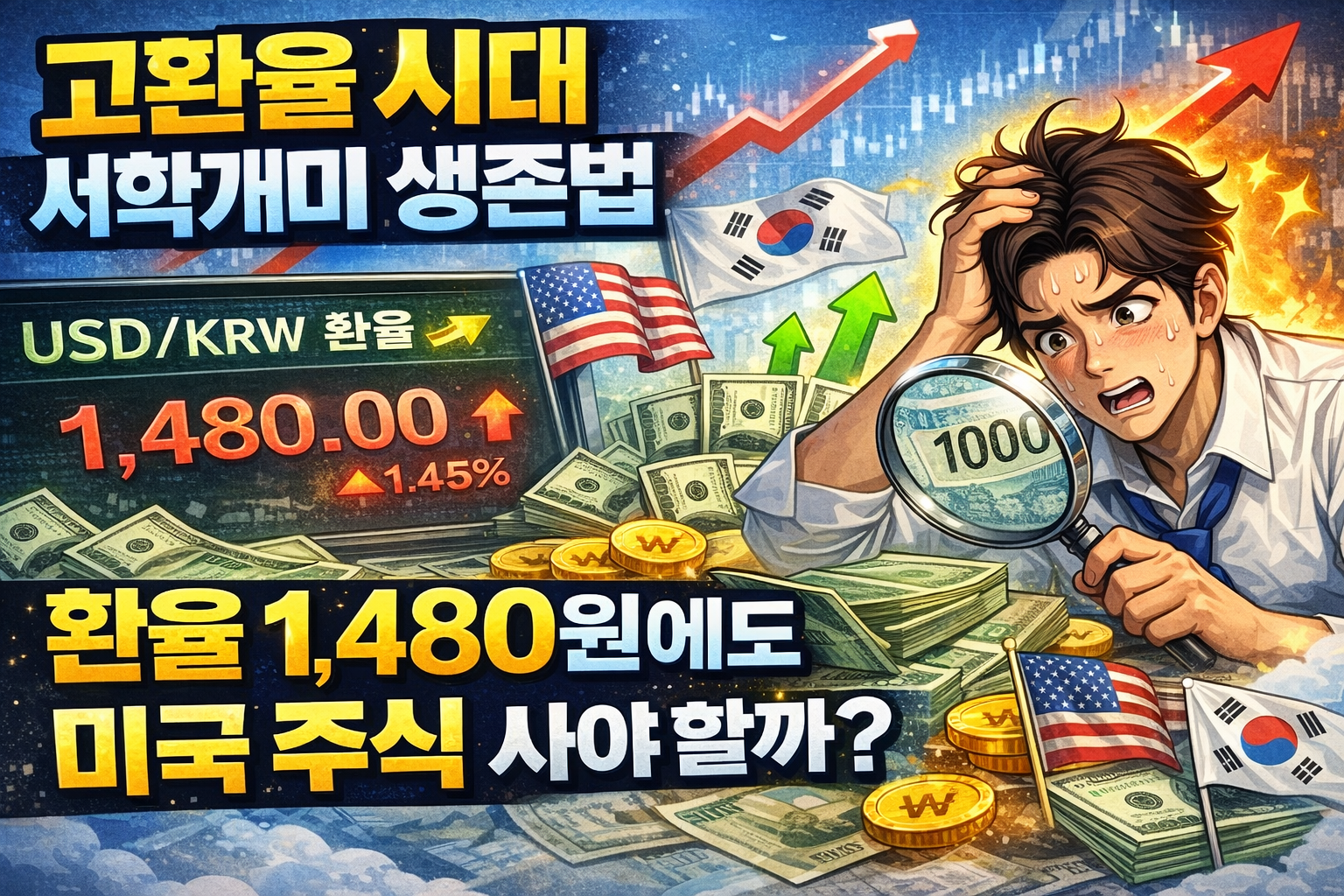 안녕하세요! 최근 원/달러 환율이 1,480원 선을 넘나들며 서학개미들의 고민이 깊어지고 있습니다. 😱 "지금 환전해서 주식을 사는 게 맞을까?" 혹은 "환차익을 노리고 팔아야 하나?" 같은 질문이 게시판마다 가득한데요.