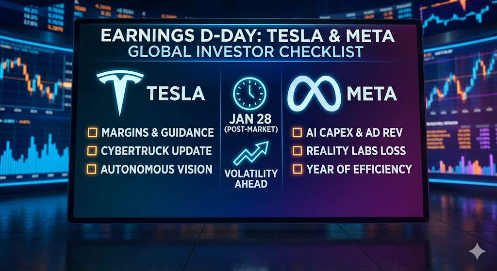 드디어 결전의 날이 밝았습니다. 바로 오늘 밤(1월 28일 수요일), 미국 주식 시장이 마감되면 전 세계 투자자들이 기다려온 테슬라(Tesla)와 메타(Meta)의 2025년 4분기 실적 발표가 이어집니다.