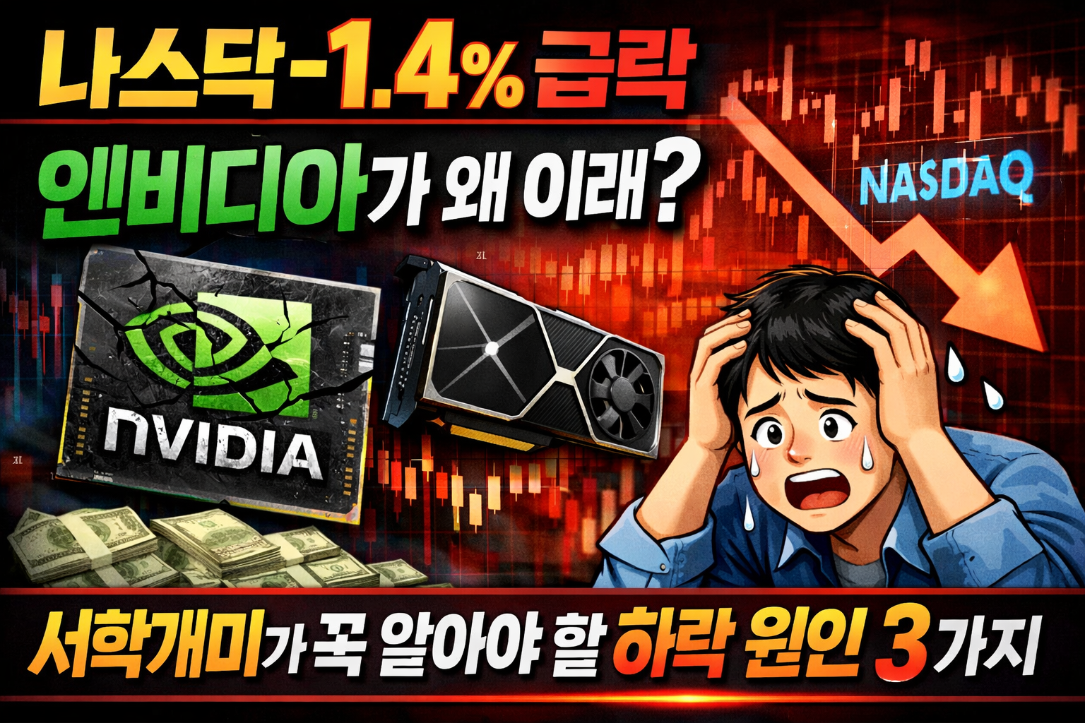 나스닥 -1.4% 급락, 엔비디아가 왜 이래? 서학개미가 꼭 알아야 할 하락 원인 3가지 📉